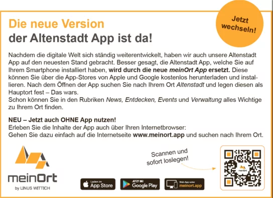 Ihrem Smartphone installiert haben, wird durch die neue meinOrt App ersetzt.